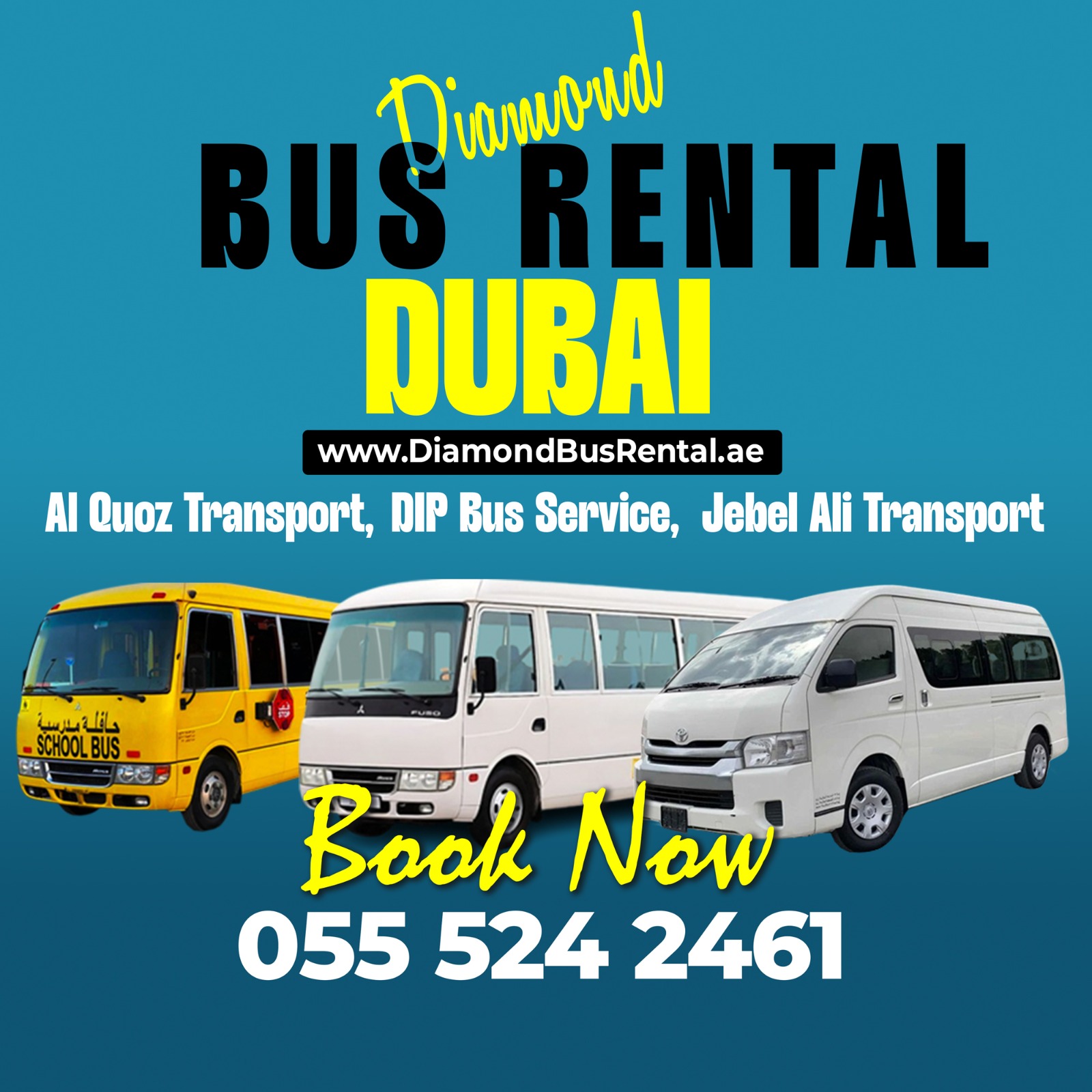 Diamond Bus Rental: Your Go-To Diamond BUS RENTAL AL QUOZ, Looking for a reliable and easy way to get in touch with a professional bus rental service in AL QUOZ? You’re in the right place! Whether you’re planning a group tour, corporate outing, school trip, or airport transfer, Diamond Bus Rental has everything you need.